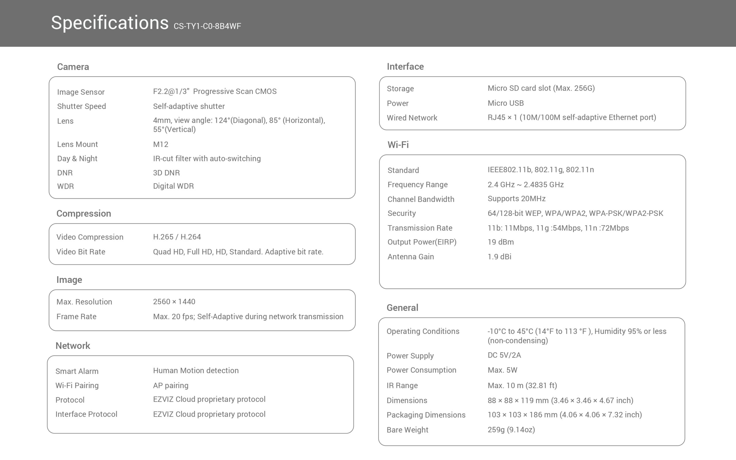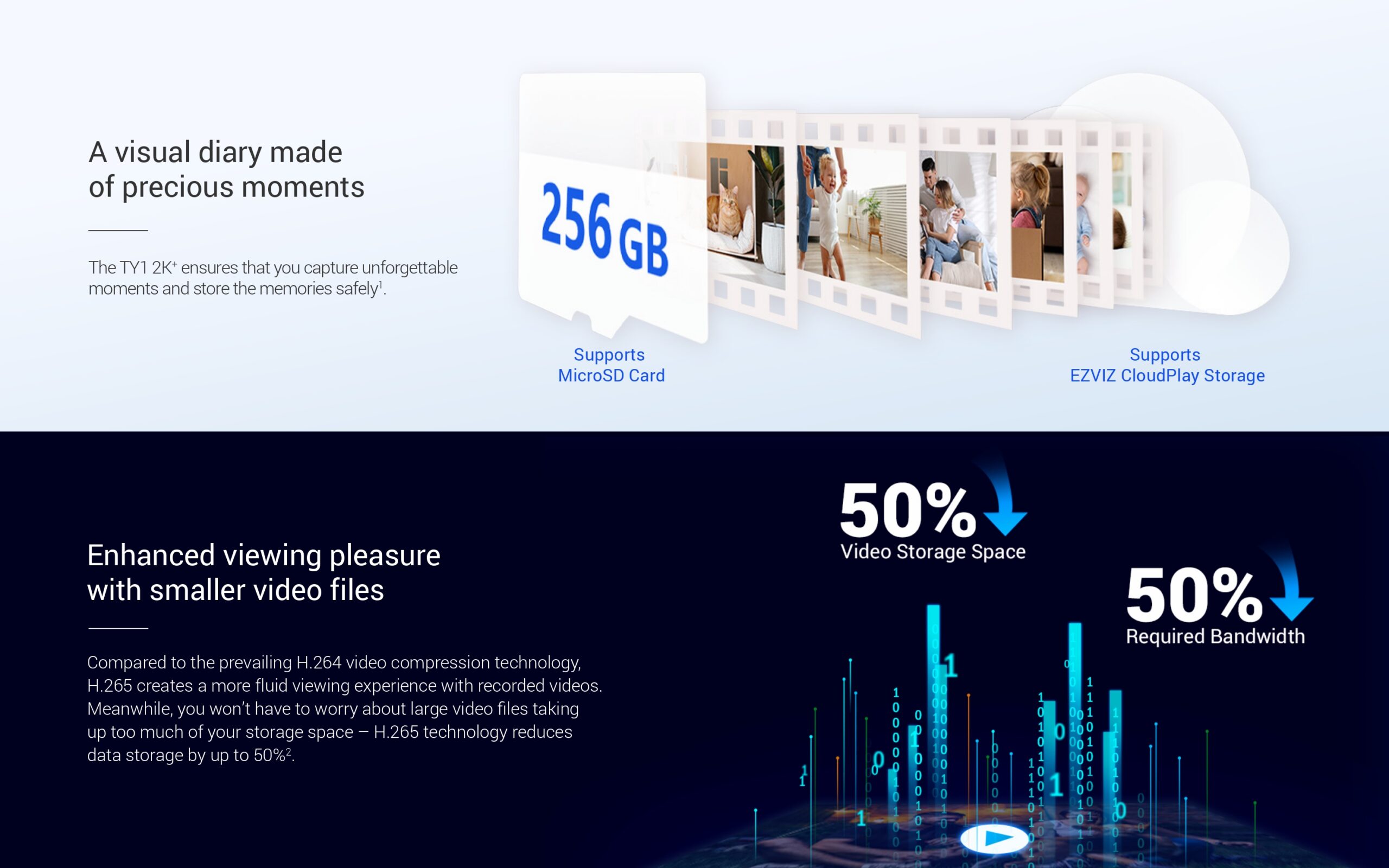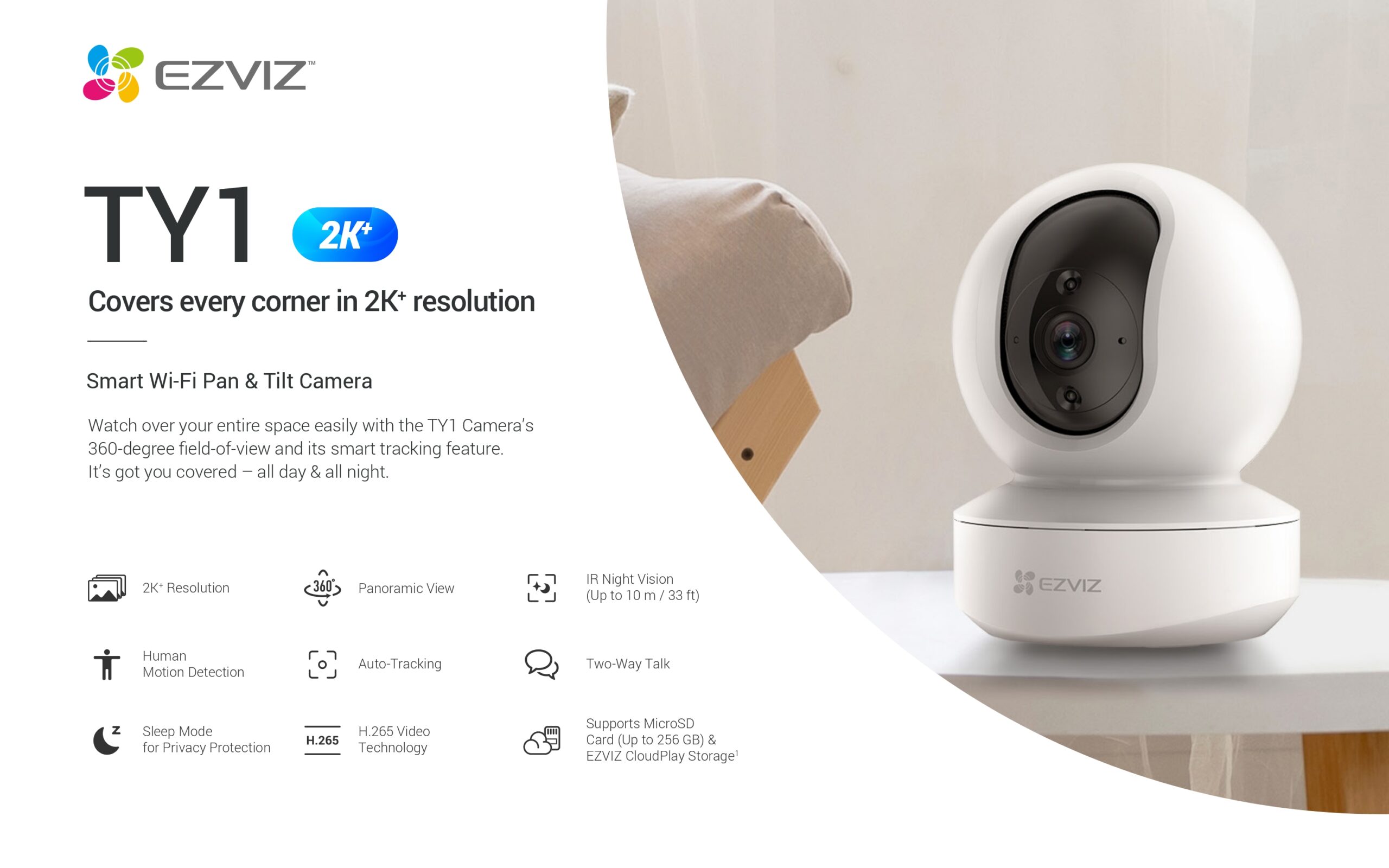 - Supports MicroSD Card (Up to 512 GB) & EZVIZ CloudPlay