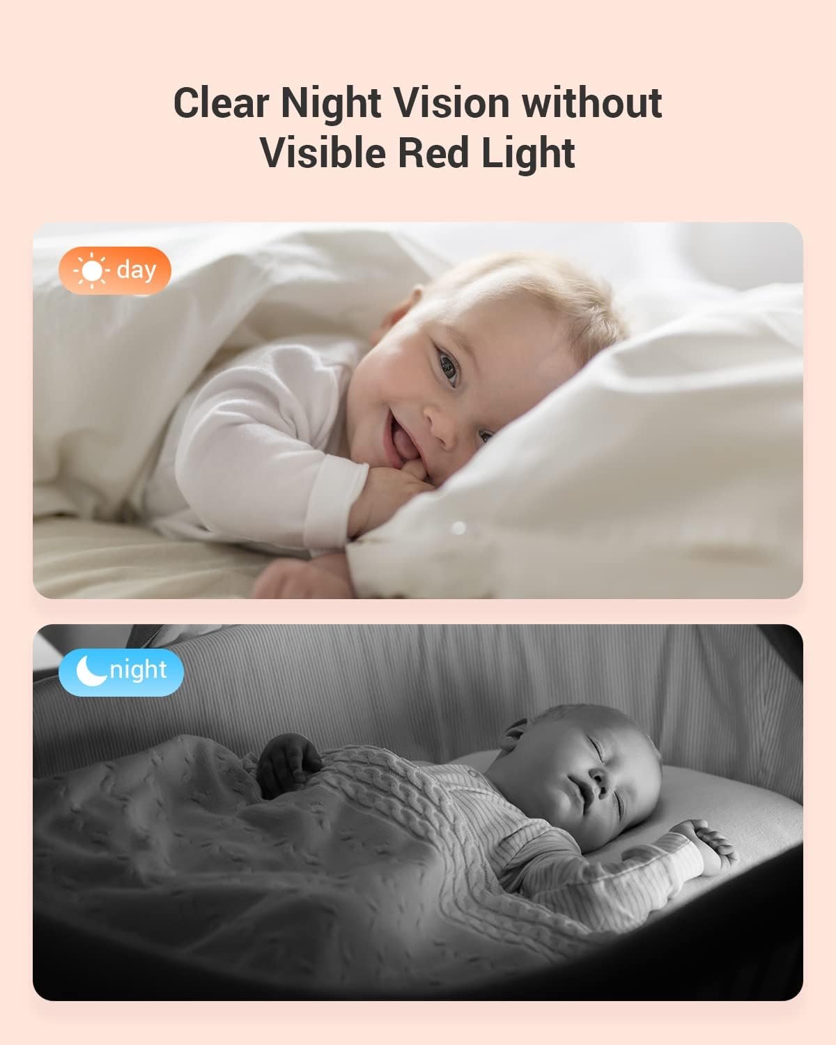 🌙 رؤية ليلية فائقة: دقة 1080P مع رؤية ليلية بالأشعة تحت الحمراء لرؤية طفلك بوضوح تام حتى في الظلام الدامس.