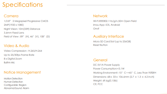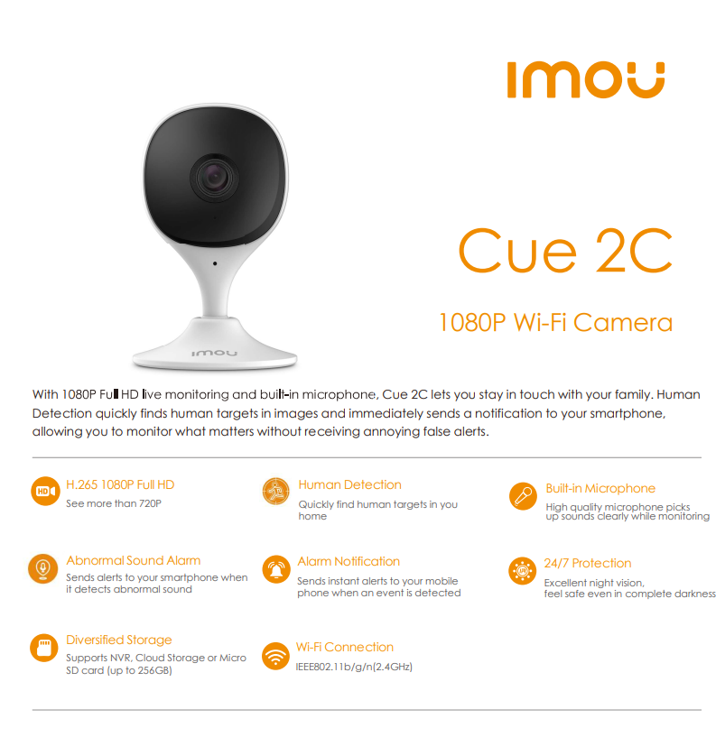 Flexible Storage Options: Supports MicroSD cards (up to 256GB), NVR, or IMOU Cloud storage.