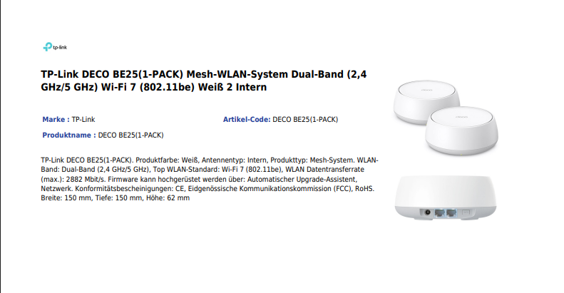 TP-Link Deco BE25 | BE3600 Whole Home Mesh WiFi 7 System
