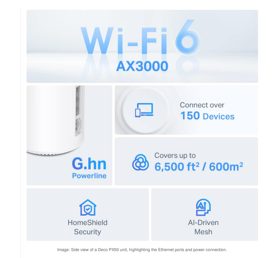 TP-Link Deco PX50 | AX3000 + G1500 Whole Home Powerline Mesh WiFi 6 System