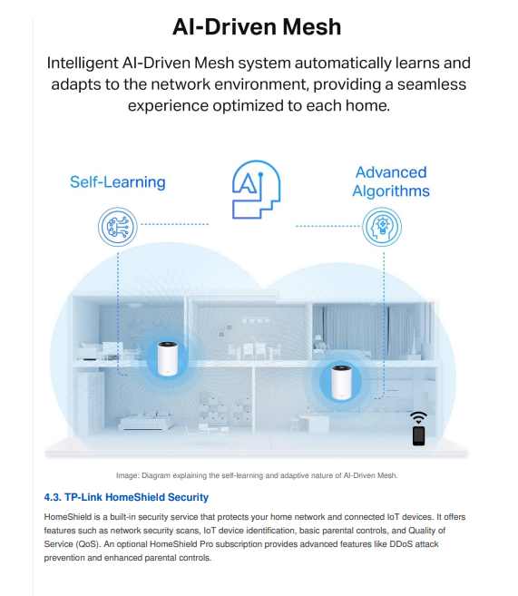 AI-Driven Mesh: Intelligently learns your home network environment to provide ideal and unique Wi-Fi tailored to your space.