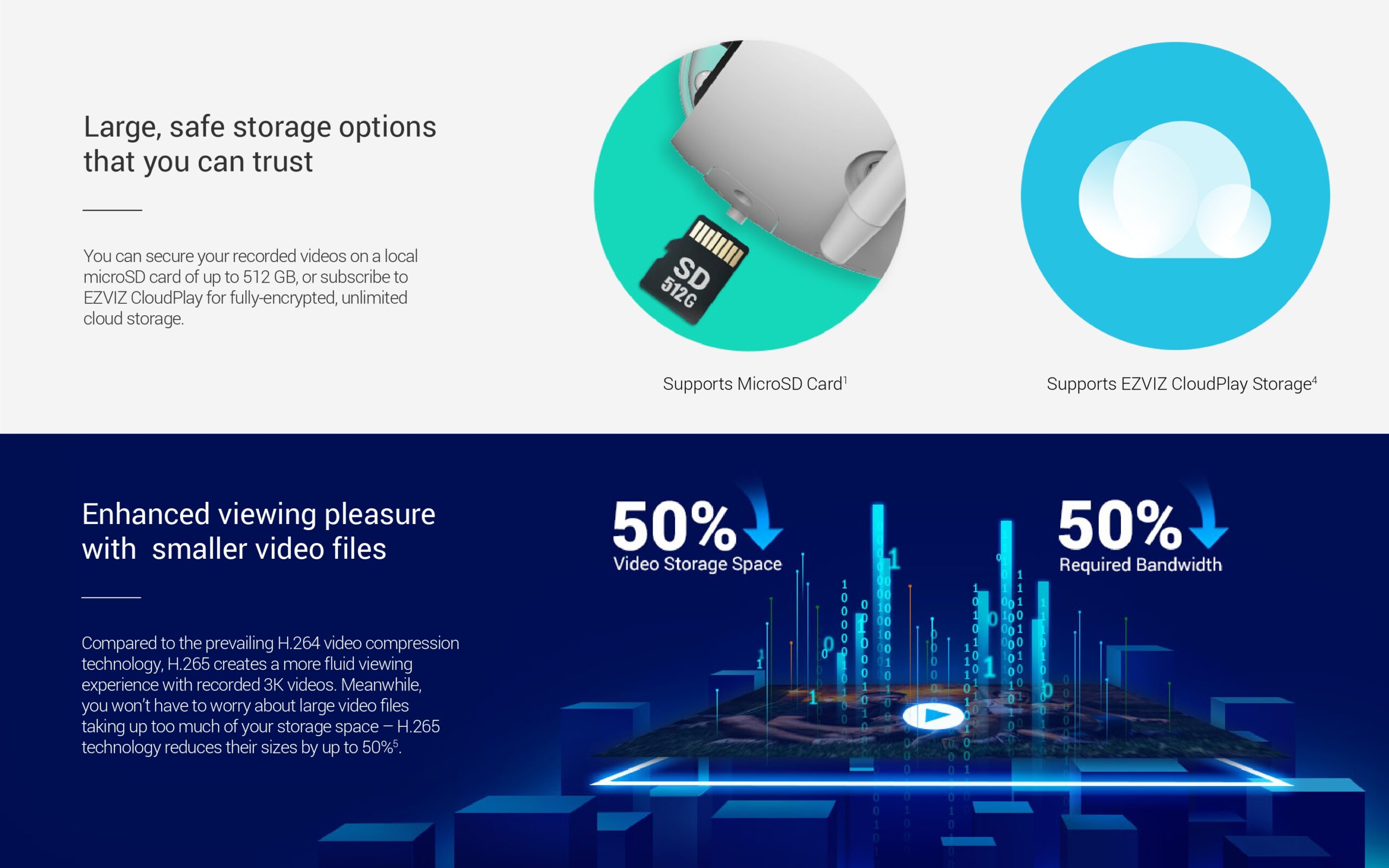 تقنية الفيديو H.265: ضغط متطور للفيديو يوفر مساحة التخزين ويقلل استهلاك البيانات.